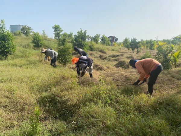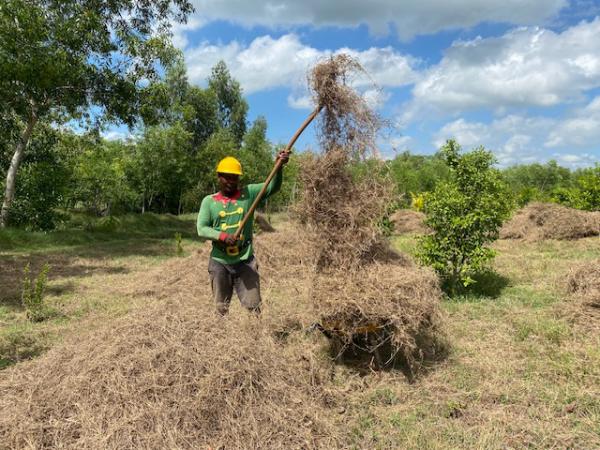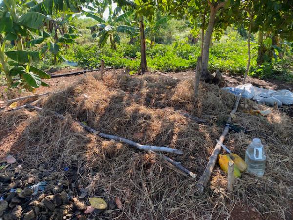 In der Mitte der Bananenplantage wurde ein einfacher Komposter aufgestellt und wir planen, in der Nähe der Gärtnerei einen Wurmkomposter zu installieren. Dadurch können wir in Zukunft den Kauf von Kompost vermeiden, der regelmäßig für die verschiedenen Anpflanzungen verwendet wird.