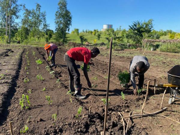 Trotz der Probleme leisteten das Team und die Praktikanten großartige Arbeit. Sie brachten mehrere Pflanzungen in die Erde und machten mehrere Aussaaten wie Karotten, Chilischoten, Paprika, Tomaten, Kohl, Rüben, Petersilie, Lauch, Bohnen, Pistazien, Melonen, Papaya und Maniok.