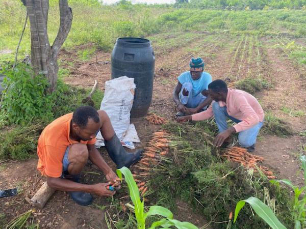 Am 1. Mai wurden wir vom Landwirtschaftsministerium zur Messe in Saint-Banabas in Terrier- Rouge eingeladen. Der Tag war sehr interessant, da die Verantwortlichen einen runden Tisch mit Landwirten und -wirtinnen organisierten, bei dem jeder seine Schwierigkeiten bei der Arbeit schildern konnte. Am 2. Mai nahm das gesamte Team an der Landwirtschaftsmesse der Vincent-Stiftung in Cap-Haïtien teil. Es war eher ein Tag, an dem man lokale Produkte probieren und haitianisches Kunsthandwerk kennenlernen konnte. In Mamoulé wird die Arbeit trotz verschiedener Schwierigkeiten fortgesetzt. Wir haben tagsüber mit großer Hitze und nachts mit starken Regenfällen zu kämpfen. Dieser Klimawandel wirkt sich vor allem negativ auf unsere Karottenproduktion aus, sie beginnt zu faulen, und daher gehen wir schneller als geplant zum Verkauf über, um nicht die ganze Produktion zu verlieren. Am Ende des Monats haben wir noch zwei Kulturen, die wir genau im Auge behalten müssen: Bohnen und Porree. Die Anpflanzung von Maniok sowie die von scharfen Chilischoten werden nicht allzu sehr vom Wetter beeinflusst.
