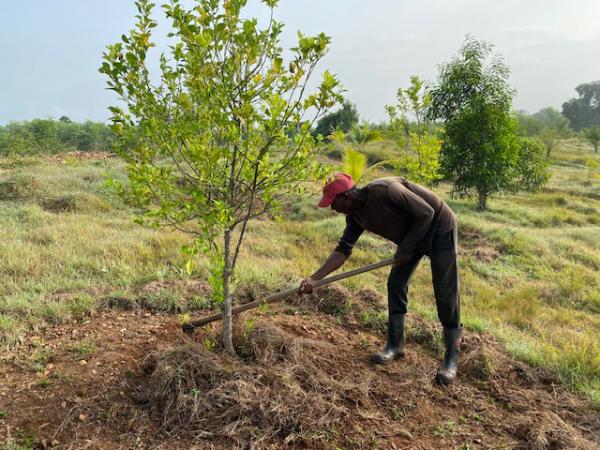 Die Arbeiten auf dem Feld gehen planmäßig weiter, mit besonderem Schwerpunkt auf der Pflege der Obstbäume.