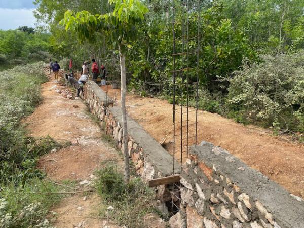 Trotz der Unwetter durch den Wirbelsturm Melissa schreiten die Baustellen voran. Bei der Mauer aus Betonblöcken wird gerade die Basis aus Steinen installiert. Die Arbeiten haben sich wegen des Regens etwas verzögert, da die LKWs die Steinbruchstelle nicht erreichen konnten, um Material zu liefern. Bei der Drahtzaun-Mauer wurden bereits die ersten Gitter montiert. Hier hatten die Unwetter keinen wesentlichen Einfluss, aber die Arbeit wurde durch Lieferverzögerungen bei den Materialien etwas eingebremst.