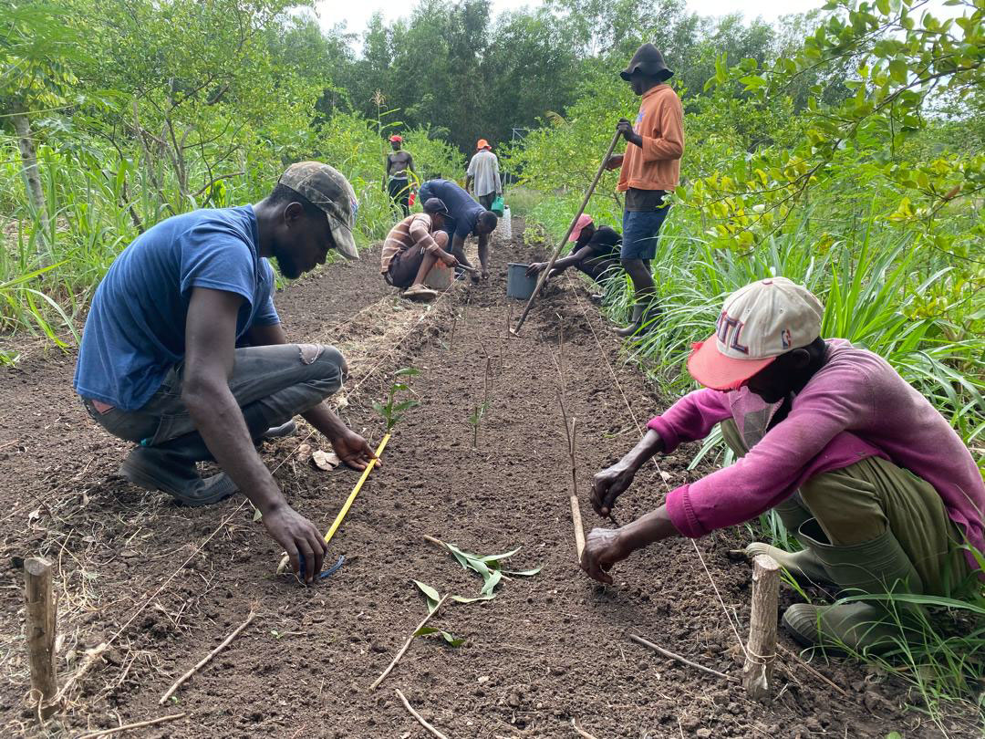 Auf der Farm von Mamoulé hat das Verwaltungskomitee von Haïti-Farnières mehrere wichtige Entscheidungen getroffen, um die nachhaltige Entwicklung des Betriebs zu stärken. Die bedeutendste Entscheidung betrifft den Übergang zur syntropischen Landwirtschaft. Das gesamte Team engagiert sich mit voller Überzeugung für diesen Ansatz, denn die bisher erzielten Ergebnisse zeigen ein besseres Wachstum der Kulturen, eine erhöhte Bodenfruchtbarkeit und eine stärkere Harmonie mit der natürlichen Umwelt.