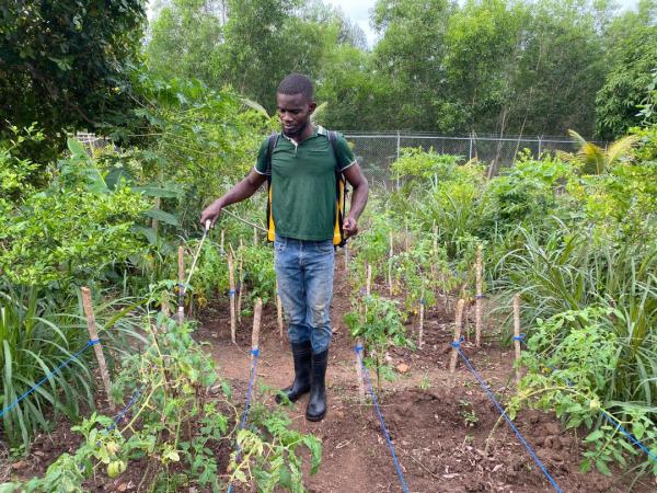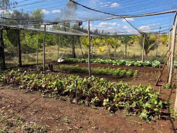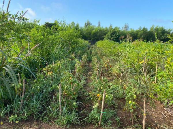 Die beiden Zäune der Farm – der Maschendrahtzaun sowie der Mauerzaun – können nun als fertiggestellt betrachtet werden. Das Gelände ist vollständig eingezäunt, wodurch das Eindringen fremder Tiere verhindert wird, die unsere Arbeiten stören oder unsere Ziegen beunruhigen könnten. Im Bereich der Kulturen entwickeln sich die Pflanzungen zufriedenstellend. Der Verkauf unserer Produkte – insbesondere Tomaten, Paprika und Auberginen – hat begonnen. Zudem setzen wir die Pflanzungen von Paprika und Lauch fort und bereiten die Flächen für die kommenden Karottenaussaaten vor. Was den Kohl betrifft, werden einige Köpfe von Raupen befallen, infolgedessen wird die für den Verkauf verfügbare Menge geringer ausfallen als ursprünglich geplant. Außerdem wurde den Kokosnussreihen besondere Aufmerksamkeit gewidmet. Sie wurden gepflegt, indem abgestorbene Blätter sowie einige zu dichte Blätter entferntwurden. Diese Maßnahme dient dazu, ein harmonischeres Wachstum zu fördern. Darüber hinaus wurde mit dem Rückschnitt mehrerer Mangobäume begonnen, die seit vielen Jahren auf dem Gelände stehen. Diese Maßnahme trägt zu einer besseren Struktur ihres Wachstums und zu einer verbesserten Gesamtgestaltung der Parzelle bei.