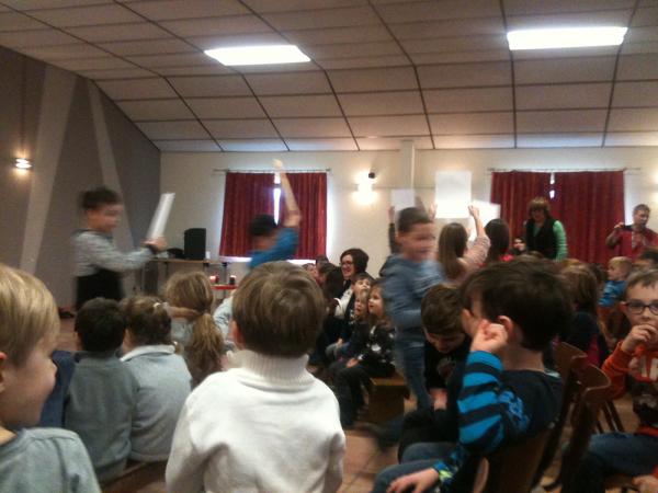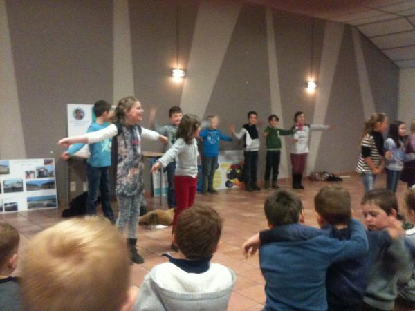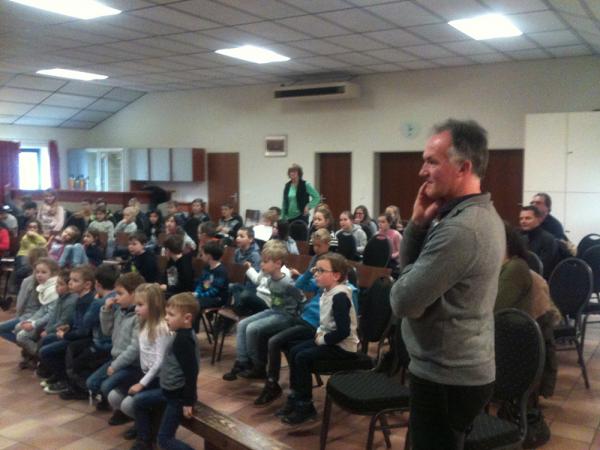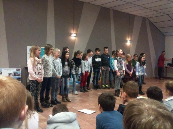 Zunächst wurden weihnachtliche Vorträge, in Form von Liedern und Gedichten, präsentiert. Anschließend erzählten die Kinder von ihrer Aktion „Kinder für Kinder“: Die Schülerinnen und Schüler zwischen sechs und elf Jahren verkauften Kugelschreiber und Kalender und organisierten zu Sankt Martin eine Spendenaktion. Ihr Ziel war es, zu zeigen, dass Kinder anderen Kindern auf der Welt, denen es schlechter geht, helfen können. Der Erlös aus den Aktionen der Grundschüler belief sich schlussendlich auf 2.345 Euro. Das Geld übergaben sie Angelika Hoffmann mit einem Scheck. „Ich bin sehr gerührt. Und darüber erstaunt, was die Kinder auf die Beine gestellt haben“, betonte Hoffmann, die zum Abschluss den Kindern Rede und Antwort zu ihrer Arbeit, den Schwierigkeiten und den Erfolgen auf Haiti stand.